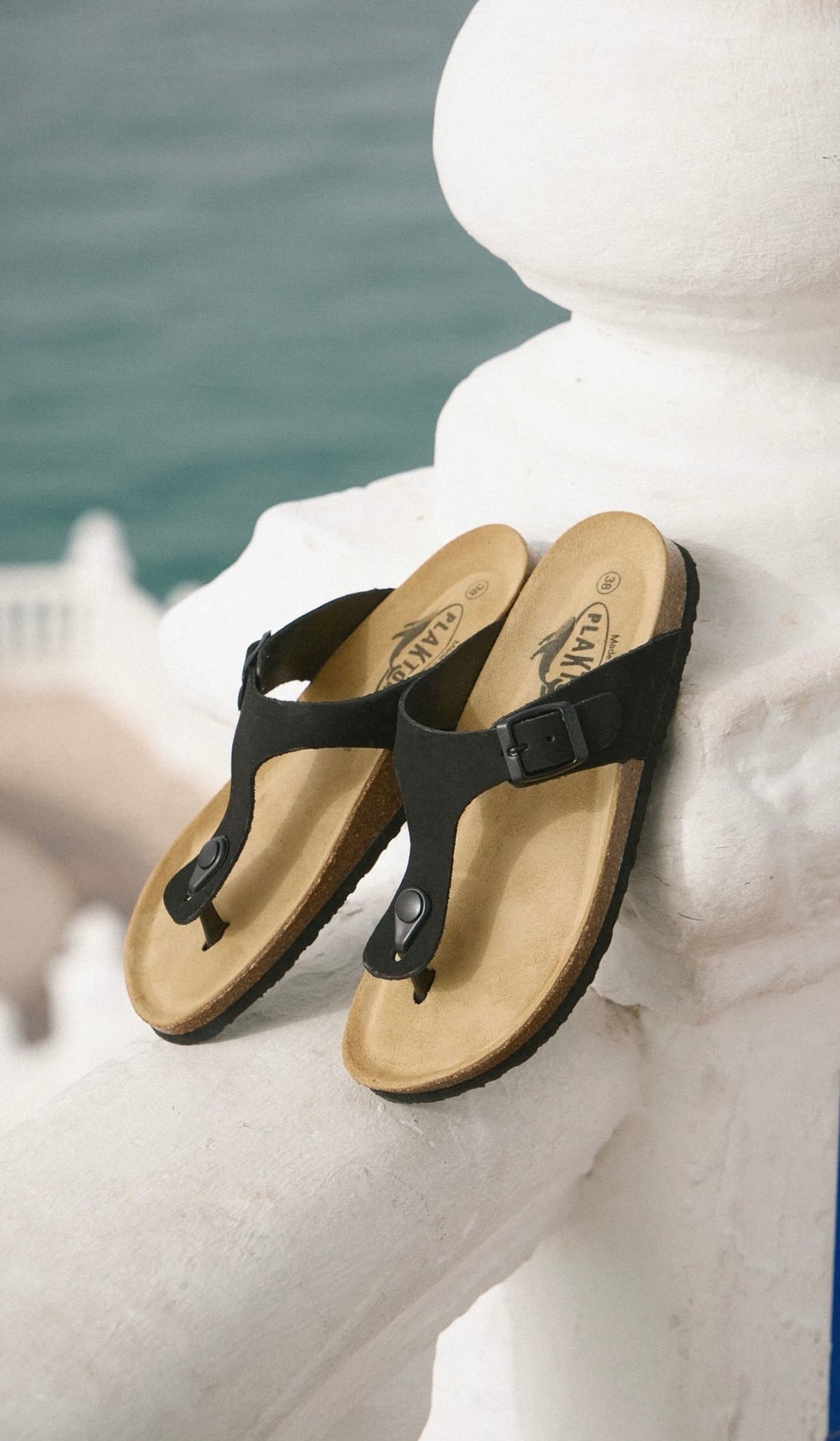 Σανδάλια από δέρμα Plakton. Ο πάτος είναι καστόρινος με Memory Cushion Technology και φυσικό φελλό. Made in Spain.