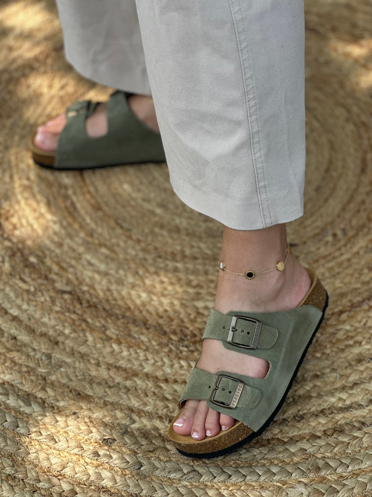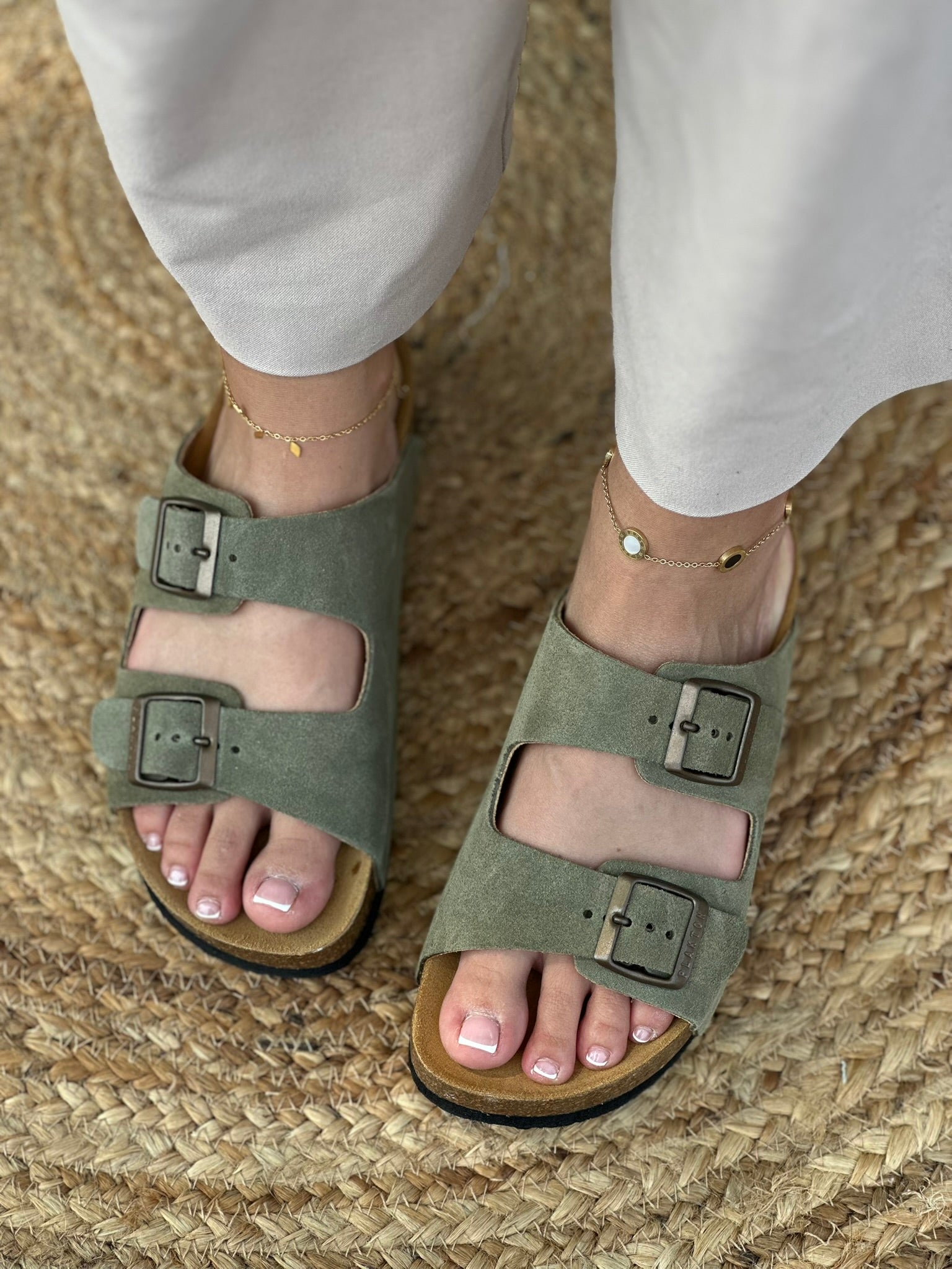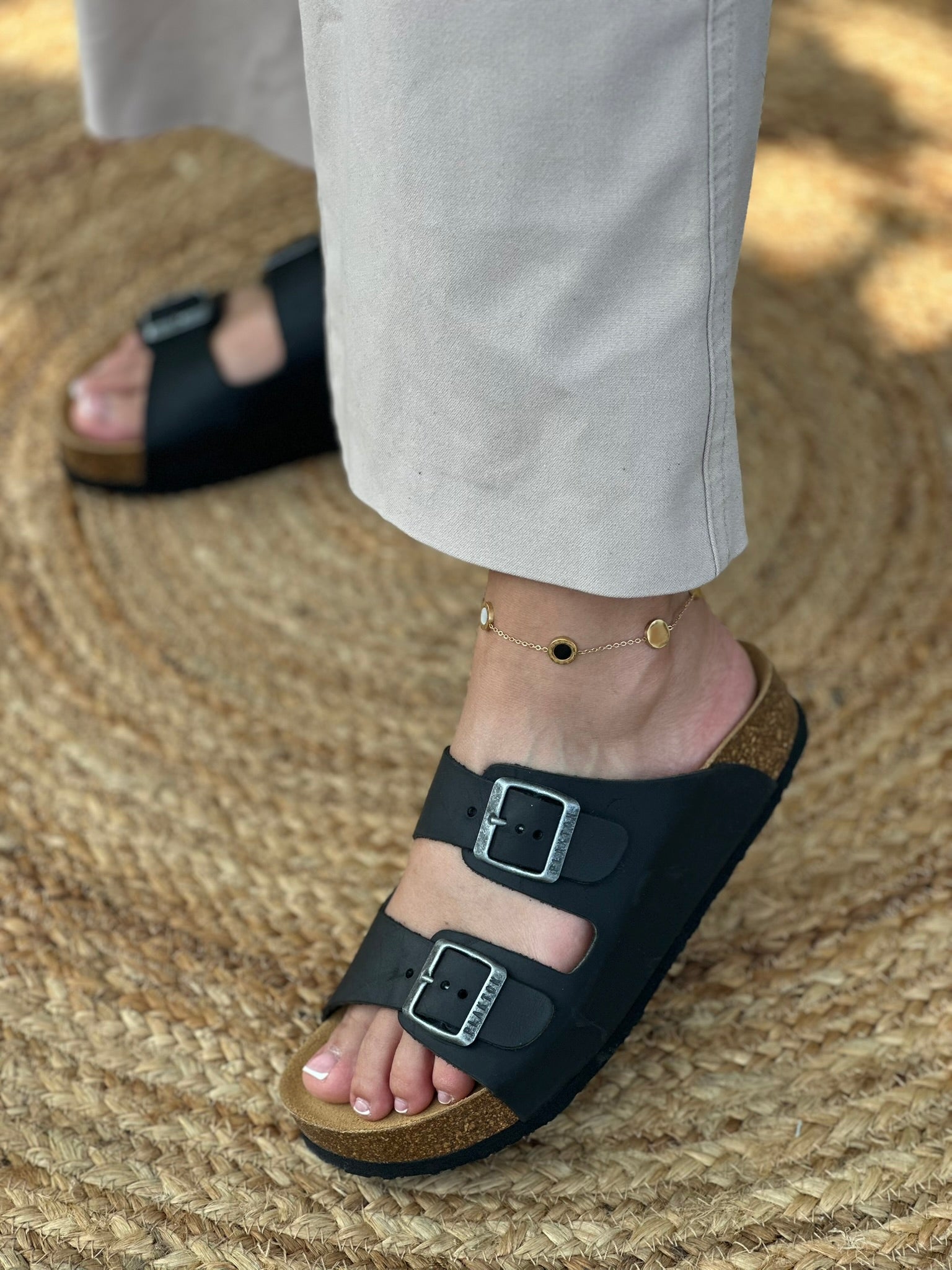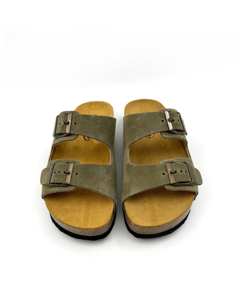 Σανδάλια από δέρμα καστόρι Plakton. Έχουν δύο φάσες με μεταλλικούς τοκάδες. Ο πάτος είναι καστόρινος με Memory Cushion Tecnology και φυσικό φελλό. Made in Spain.