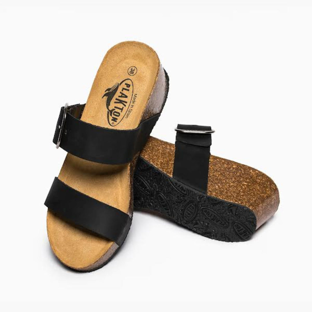 Plakton. Γυναικεία δερμάτινα σανδάλια.