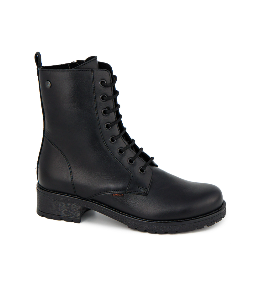 Γυναικεία μποτάκια,δέτα,της RAGAZZA,ελληνικής κατασκευής,από γνήσιο δέρμα. Το εσωτερικό φερμουάρ διευκολύνει στο φόρεμα. Η σόλα είναι γνήσια πολυουρεθάνη,για άνετο βάδισμα. Το ύψος του τακουνιού είναι στα 4cm. Το πρωτοποριακό σύστημα DRYFLEX στον πάτο του,είναι απορροφητικό,αντικραδασμικό και πλενόμενο. Διατίθεται σε μαύρο και ταμπά χρώμα.