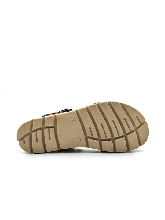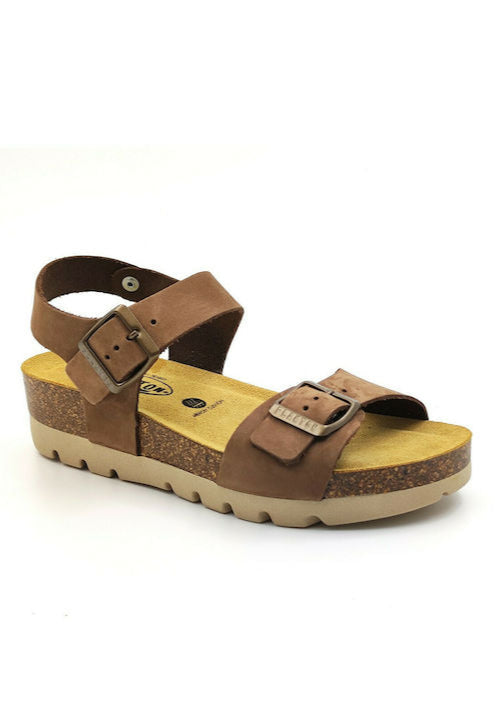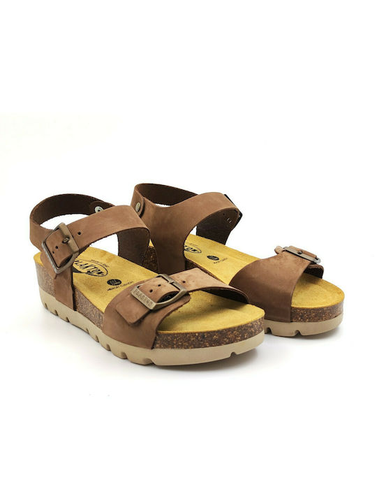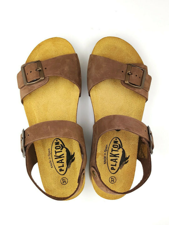 Γυναικεία σανδάλια σε καφέ χρώμα, της επώνυμης εταιρείας PLAKTON.