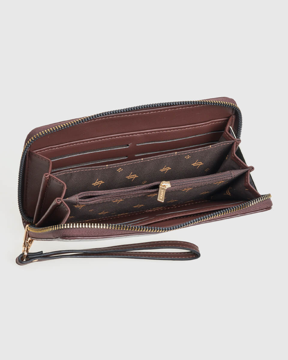 • Θήκες: Κεντρικός χώρος με φερμουάρ, εσωτερικές θήκες για κάρτες και χαρτονομίσματα